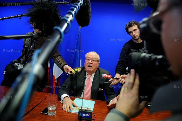 Mots-clés : 2009, FN, Front national, Jean-Marie Le Pen, Journalistes, Le Pen, Micros, Nanterre, perches, Voeux