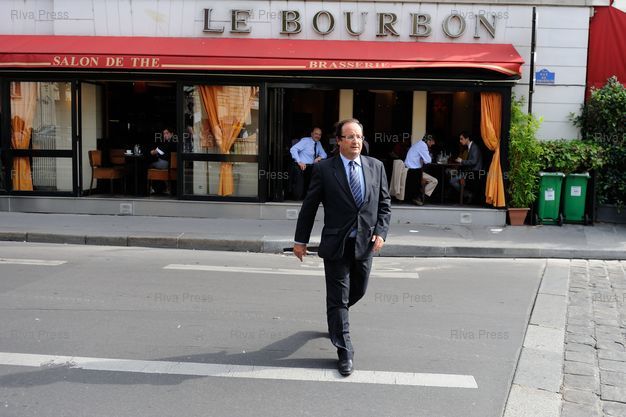 François Hollande, qui était à la brasserie Le Bourbon avec Pierre Moscovici, est interpellé par les manifestants - Photo © Lionel Préau +33 (0)6 68 12 83 77