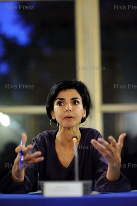 Légende : Rachida Dati, maire du 7eme arrondissement de Paris, participe a une reunion publique avec les habitants a propos de la construction d'un parking public sous l'avenue Bosquet. Mairie du 7eme, salle des mariages.