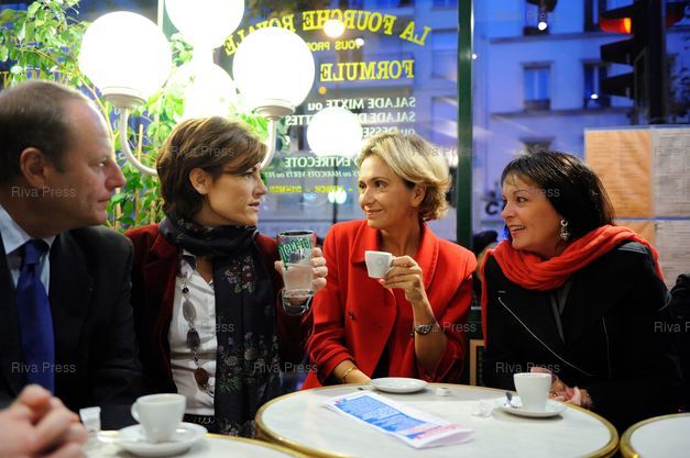 Philippe Goujon, Chantal Jouanno, Valérie Pécresse et Brigitte Kuster, maire du 17eme arrondissement, au café avant le début du tractage - Photo © Lionel Préau +33 (0)6 68 12 83 77