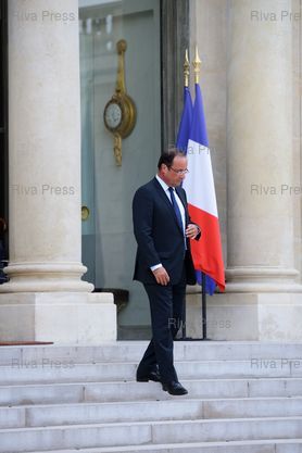 François Hollande descend les marches du perron pour accueillir la délégation syrienne - Photo © Lionel Préau +33 (0)6 68 12 83 77