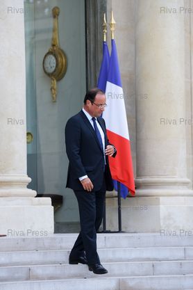 François Hollande descend les marches du perron pour accueillir la délégation syrienne - Photo © Lionel Préau +33 (0)6 68 12 83 77