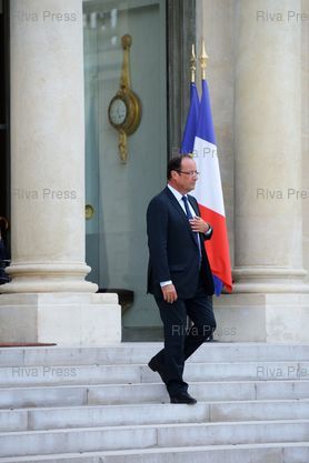 François Hollande descend les marches du perron pour accueillir la délégation syrienne - Photo © Lionel Préau +33 (0)6 68 12 83 77