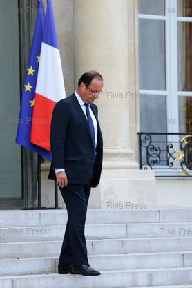François Hollande descend les marches du perron pour accueillir la délégation syrienne - Photo © Lionel Préau +33 (0)6 68 12 83 77