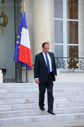 François Hollande descend les marches du perron pour accueillir la délégation syrienne - Photo © Lionel Préau +33 (0)6 68 12 83 77