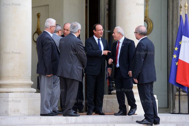 Légende : François Hollande reçoit au palais de l'Elysée une délégation du Conseil National Syrien, conduite par son président, le Dr Abdel Basset Sayda.