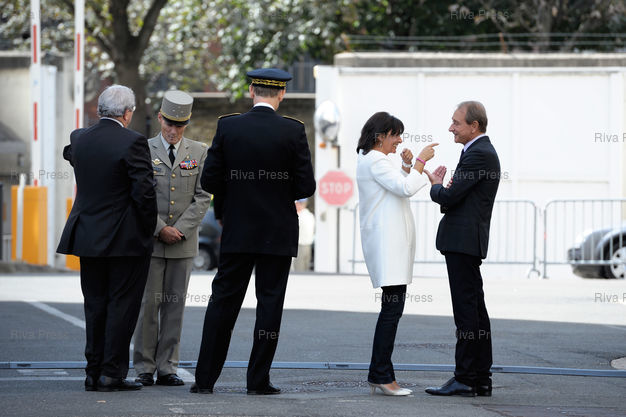 Titre : Ayrault, Duflot et Delanoë à la caserne de Reuilly