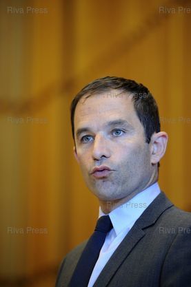 Légende : Benoît Hamon, ministre délégué à la Consommation, fait le point sur l'agenda mis en oeuvre sur le projet de loi consommation après la présentation des conclusions du rapport du Conseil d'analyse économique (CAE) sur le thème "La protection du consommateur: rationalité limitée et régulation".
