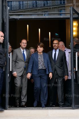Martine Aubry quitte le palais de la Mutualité entourée par Guillaume Bahelay et Harlem Désir - Photo © Lionel Préau +33 (0)6 68 12 83 77