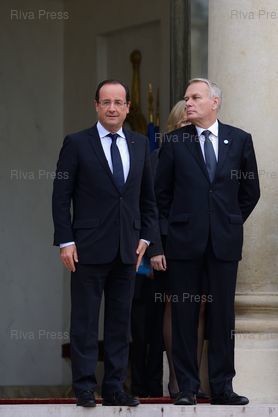 François Hollande et Jean-Marc Ayrault sur le perron - Paris - 10/10/2012 - Photo © Lionel Préau +33 (0)6 68 12 83 77