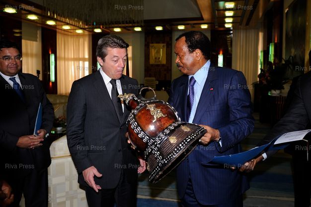 Paul Biya remet un cadeau à Alain Joyandet - Photo © Lionel Préau +33 (0)6 68 12 83 77