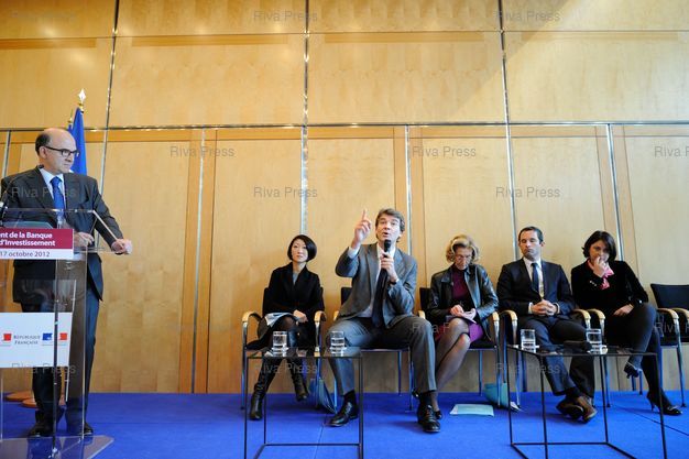 Légende : Point presse sur le lancement de la Banque Publique d'Investissement (BPI) au ministère de l'économie et des finances.