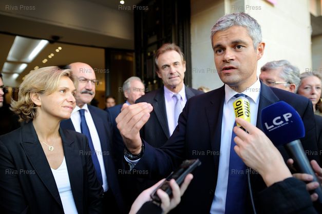 Valérie Pécresse et Laurent Wauquiez répondent aux questions des journalistes avant l'arrivée de François Fillon - Saint-Mandé - 23/10/2012 - Photo © Lionel Préau +33 (0)6 68 12 83 77