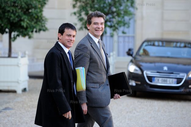 Mots-clés : 2012, Arnaud Montebourg, Conseil des Ministres, Elysée, Manuel Valls, Ministre, Montebourg, Paris, Valls