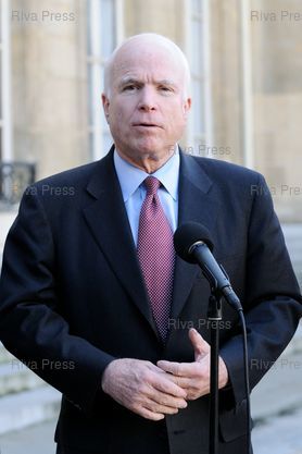 John McCain speaks to the press after his meeting with the french president - Photo © Lionel Préau +33 (0)6 68 12 83 77