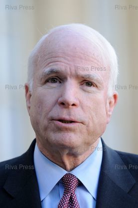 John McCain speaks to the press after his meeting with the french president - Photo © Lionel Préau +33 (0)6 68 12 83 77