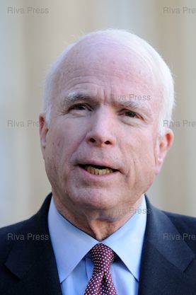 John McCain speaks to the press after his meeting with the french president - Photo © Lionel Préau +33 (0)6 68 12 83 77