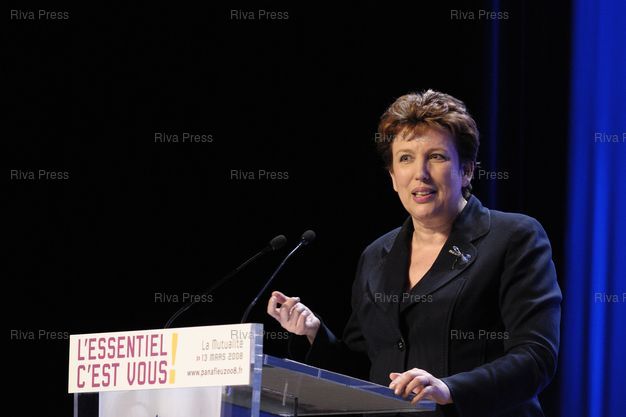 Légende : Meeting de Françoise de Panafieu, candidate UMP à la mairie de Paris aux élections municipales, en présence de Xavier Bertrand, Roselyne Bachelot - maison de la Mutualite.