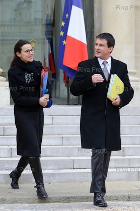 Mots-clés : 2012, Aurelie Filippetti, Conseil des Ministres, Elysée, Filippetti, Manuel Valls, Ministre, Paris, Valls