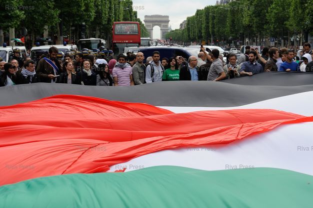 Mots-clés : 2010, Champs Elysees, drapeau palestinien, flottille, Gaza, Israel, Manifestation, Palestiniens, Paris