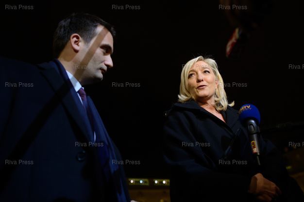 Marine Le Pen et Florian Philippot s'expriment devant la presse après leur entretien avec le président - Paris - 30/11/2012 - Photo © Lionel Préau +33 (0)6 68 12 83 77