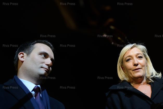 Marine Le Pen et Florian Philippot s'expriment devant la presse après leur entretien avec le président - Paris - 30/11/2012 - Photo © Lionel Préau +33 (0)6 68 12 83 77