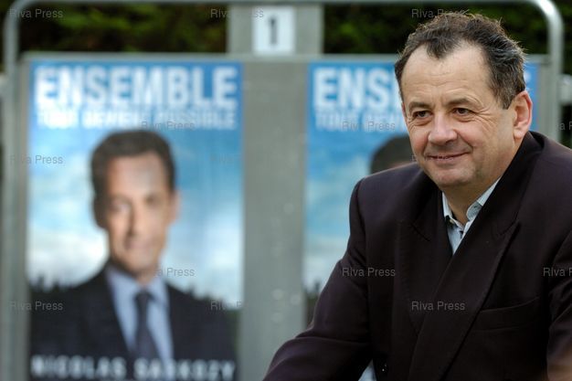 Guillaume Sarkozy, frère de Nicolas Sarkozy, devant des affiches de campagne de Nicolas Sarkozy - Photo © Lionel Préau +33 (0)6 68 12 83 77