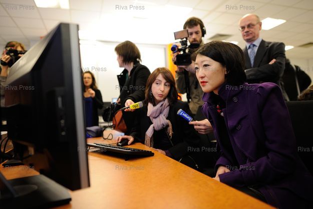 Légende : Fleur Pellerin, ministre déléguée auprès du ministre du Redressement productif, chargée des Petites et Moyennes Entreprises, de l'Innovation et de l'Economie numérique, se rend au Centre de Surveillance d'Orange pour "saluer le travail des salariés, à travers eux, l'ensemble des français mobilisés en ce jour de Saint-Sylvestre dans leurs entreprises, publiques ou privées, afin d'assurer la continuité des services" - Paris - 31/12/2012 - Photo © Lionel Préau +33 (0)6 68 12 83 77