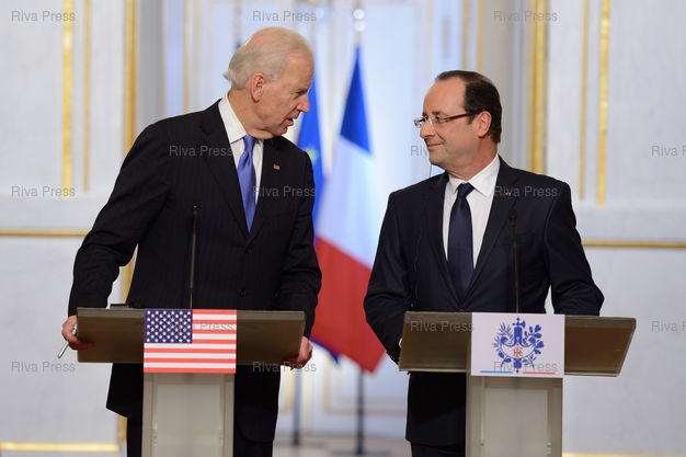 Caption : François Hollande reçoit Joseph R. Biden, Vice-Président des Etats-Unis, au palais de l'Elysée.