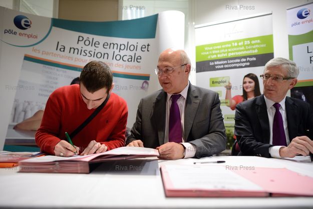Michel Sapin signe des conventions d'emplois d'avenir avec des jeunes - Paris - 14/02/2013 - Photo © Lionel Préau +33 (0)6 68 12 83 77