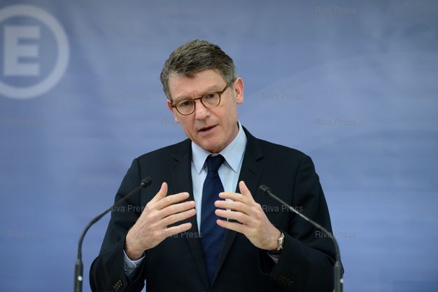 Légende : Vincent Peillon, ministre de l'éducation nationale, fait un point d'étape sur les travaux de la délégation ministérielle chargée de la prévention et de la lutte contre les violences en milieu scolaire lors d'une conférence de presse au ministère.