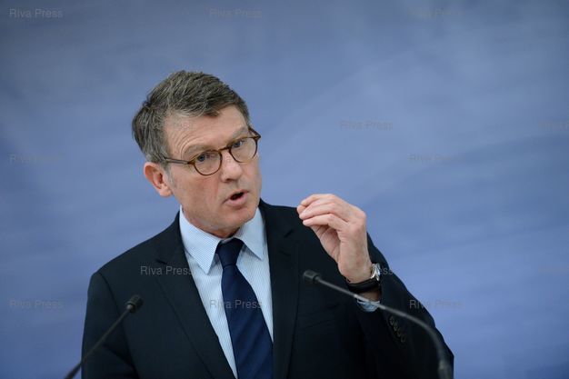 Légende : Vincent Peillon, ministre de l'éducation nationale, fait un point d'étape sur les travaux de la délégation ministérielle chargée de la prévention et de la lutte contre les violences en milieu scolaire lors d'une conférence de presse au ministère.