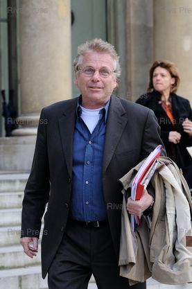 Légende : Daniel Cohn-Bendit, co-président du groupe Verts au Parlement européen, foule pour la première fois le sol de l'Elysée, dans le cadre des rendez-vous du président Nicolas Sarkozy avec les chefs de file des différents partis du Parlement européen en vue de la présidence française de l'Union européenne - Paris - 16/04/2008 - Photo © Lionel Préau +33 (0)6 68 12 83 77