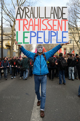 Légende : Manifestation contre l'accord interprofessionnel du 11 janvier sur la sécurisation de l'emploi, à l'appel de la CGT, FO, FSU et Solidaires d'Ile de France - de la place du Châtelet vers l'Assemblée nationale - Paris - 05/03/2013 - Photo © Lionel Préau +33 (0)6 68 12 83 77