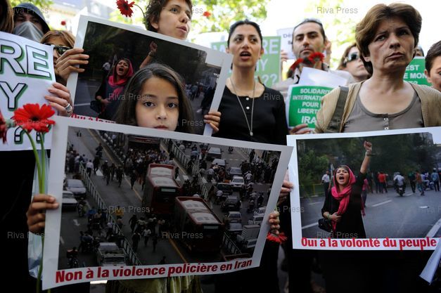 Légende : Manifestation de contestation du résultat du vote pour l'élection présidentielle en Iran, aux abords de l'ambassade d'Iran en France - Paris - 16/06/2009 - Photo © Lionel Préau +33 (0)6 68 12 83 77