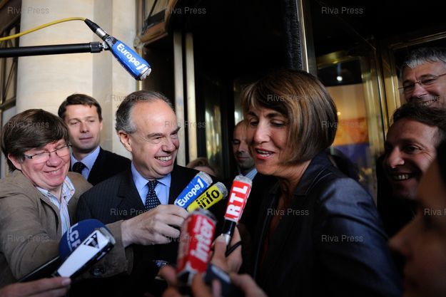 Frédéric Mitterrand et Christine Albanel s'expriment devant le ministère - Photo © Lionel Préau +33 (0)6 68 12 83 77