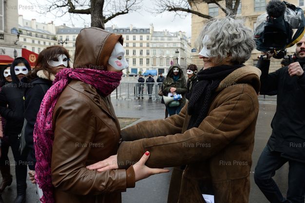 Légende : Happening de Médecins du Monde devant l'Assemblée nationale pour réclamer l'abrogation de la loi sur le racolage public en discussion le 28 mars au Sénat - Paris - 18/03/2013 - Photo © Lionel Préau +33 (0)6 68 12 83 77