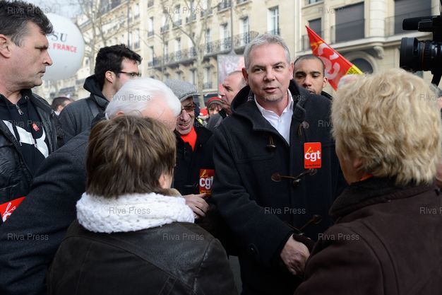 Thierry le Paon, Secrétaire général de la CGT, rencontre les manifestants au départ de la manifestation - Paris - 28/03/2013 - Photo © Lionel Préau +33 (0)6 68 12 83 77