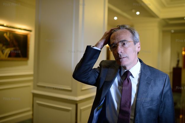 Légende : Point presse de Frédéric Saint-Geours, président de l'UIMM, après l'annonce de sa candidature à la présidence du Medef - Hôtel Intercontinental - Paris - 05/04/2013 - Photo © Lionel Préau +33 (0)6 68 12 83 77