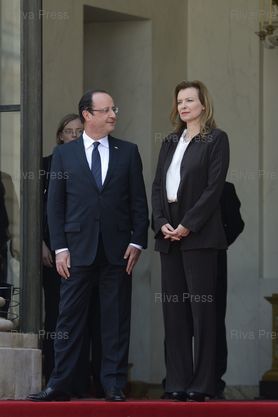 François Hollande et Valérie Trierweiler sur le perron pendant le départ de Bronislaw Komorowski et de son épouse Anna - Paris - 07/05/2013 - Photo © Lionel Préau +33 (0)6 68 12 83 77