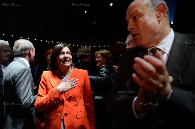 Légende : Premier meeting de campagne d'Anne Hidalgo, candidate à la Mairie de Paris aux élections municipales 2014 - Bataclan.