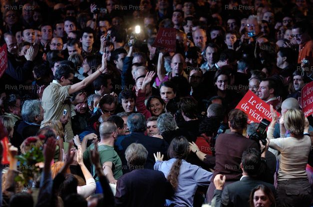 Légende : Dernier meeting de campagne de Ségolène Royal pour la Primaire du Parti Socialiste, à trois jours du vote des militants. Gymnase Japy.