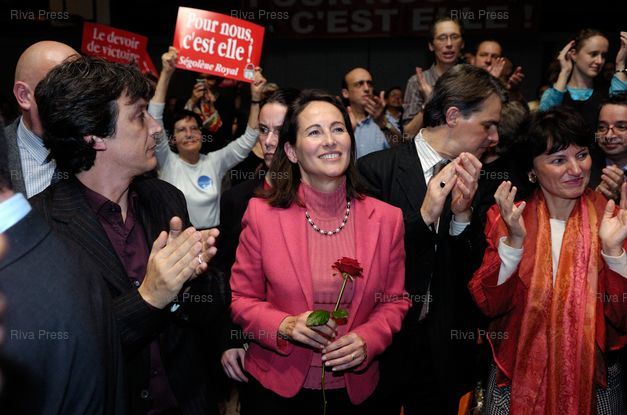 Légende : Dernier meeting de campagne de Ségolène Royal pour la Primaire du Parti Socialiste, à trois jours du vote des militants. Gymnase Japy.