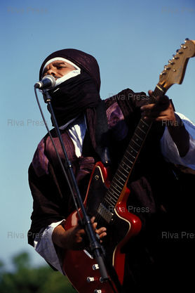 Légende : Tinariwen en concert en plein air dans le cadre du festival Paris quartier d'été - Parc de Belleville - Paris - 28/07/2004 - Photo © Lionel Préau +33 (0)6 68 12 83 77
