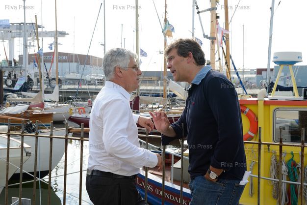 Légende : Université d'été du Parti Socialiste. Philippe Martin et Arnaud Montebourg échangent après la rencontre avec les jeunes socialistes - La Rochelle - 23/08/2013 - Photo © Lionel Préau +33 (0)6 68 12 83 77