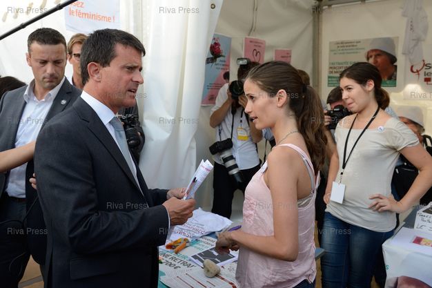 Caption : Université d'été du Parti Socialiste. Manuel Valls à la rencontre des militants devant l'Espace Encan - La Rochelle - 23/08/2013 - Photo © Lionel Préau +33 (0)6 68 12 83 77