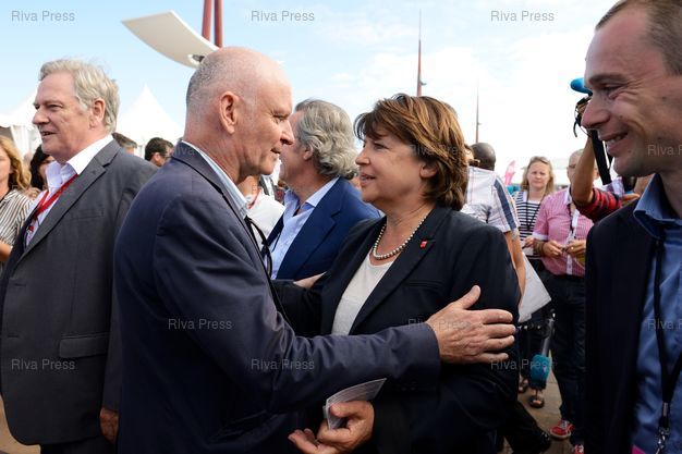 Légende : Université d'été du Parti Socialiste. Martine Aubry saluée par Christophe Girard, en présence d'Olivier Dussopt - La Rochelle - 24/08/2013 - Photo © Lionel Préau +33 (0)6 68 12 83 77
