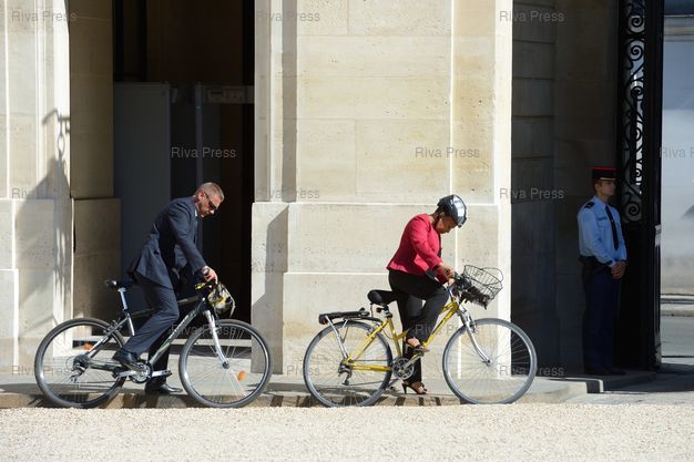 Mots-clés : 2013, casque, Christiane Taubira, Conseil des Ministres, decathlon, Elysée, Ministre, Paris, taubira, velo