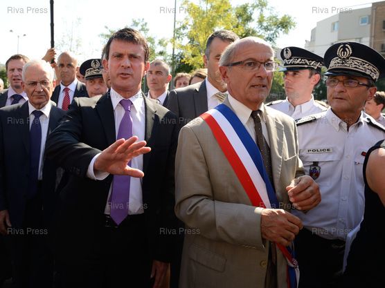 Légende : Manuel Valls, ministre de l'Intérieur, se rend à Colombes pour faire un point de situation sur les récents événements et règlements de comptes qui se sont déroulés ces deux derniers jours entre bandes rivales.