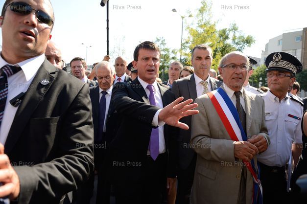 Manuel Valls déambule dans le quartier Louis Aragon, accompagné par Philippe Sarre, maire de Colombes - Colombes - 05/09/2013 - Photo © Lionel Préau +33 (0)6 68 12 83 77